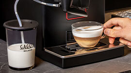 Gaggia’s CAPPinCUP system is the key to effortless milk-coffee beverages. With a stylish external carafe, this practical unit features useful marks to help you pour the exact quantity of milk. Dishwasher-safe, you can also store it in the fridge after use.