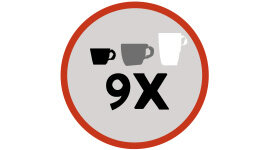 Explore nine beverage options: ristretto, espresso, espresso lungo, coffee, Americano, cappuccino, café au lait, frothed milk, and hot water, catering to a variety of tastes and preferences.