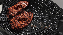 Measuring 20 centimetres in height, the high dome hood provides plenty of room for your roasts and other meats, allowing you to enjoy the benefits of convection cooking when the hood is lowered.