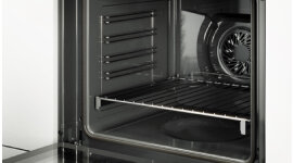 For a safer kitchen environment, the outside glass of the oven door glass remains cooler during cooking. Plus, the telescopic guides make pulling out hot dishes smooth and easy. Also comes with a child lock.