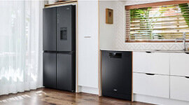 This dishwasher features modern styling and a black finish to match Haier refrigerators, with soft-touch controls, an LED display and a child lock for peace of mind.