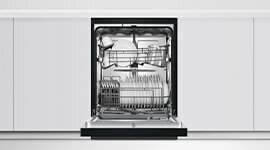 | Features | Smart Control: With Wi-Fi capability, you can easily control your dishwasher remotely using the SmartHQ™ app and receive helpful alerts Basket Adjustment: Adjustable height, foldable cup racks. Auto Door Opening: For effective drying, the dishwasher door automatically opens at the end of the cycle to help remove excess moisture. Adjustable Baskets: The lower basket accommodates round plates up to 32cm and the top basket can accommodate round plates up to 25cm. Auto Wash Sensing: The Auto Wash program uses sensors to detect how dirty your dishes are and set the ideal wash, reducing unnecessary water and energy use for a more efficient clean. Sanitise Dishes: Add the Sanitise wash modifier to any cycle for a final high-temperature rinse that helps to kill 99.9% of bacteria. Filter System: Triple Stage Filter System. ThermoDry System: The specialised ThermoDry system delivers drier dishes by channelling moisture away after the final hot rinse using natural condensation Extra Features: Flood protection, Keylock, LED display, Removable cutlery tray, Rinse aid indicator light. Wash Cycles: 8 Wash program modifiers: |
