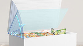 The light and easy-to-open door stays suspended at a 30 or 60 degree angle when in use, giving you a more streamlined experience using your freezer and keeping your hands free.