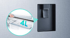 Stay refreshed with a built-in water dispenser, seamlessly integrated into the flat door design. Simply refill the internal tank to enjoy cool, filtered water without the need for plumbing.