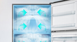 Cold air is evenly circulated throughout the fridge and freezer, helping maintain a consistent temperature on every shelf. It keeps your food stored at its best—wherever you place it.