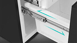 This Hisense fridge features Easy Glide Drawers: Big drawers with straight metal gliding motion, capable of easily moving up to 27kg. It’s durable, easy to open and is very quiet.