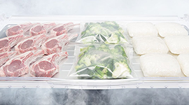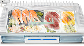 A sensor and large aluminium tray rapidly freeze food past the maximum ice crystal formation zone, helping reduce drip loss and protect texture. Ideal for preserving flavours in meats, seafood, vegetables, and prepared meals.