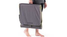 The mat folds flat for easy storage and includes a built-in handle, making it simple to move between rooms or store away after use without taking up space.