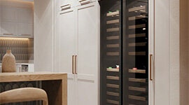 The wide, upright side-by-side configuration provides generous storage space for extensive collections. It enhances organisation and accessibility, making it easy to categorise and retrieve bottles while maintaining a clean, modern presentation.