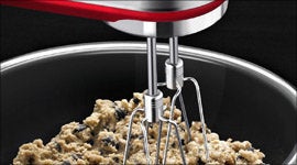 With a remarkable nine speeds, this mixer can gently break apart chunky ingredients without turning them to mush. It will also cream your butter and sugar with effortless ease. Changing speeds is as simple as pressing the UP or DOWN arrow on the soft grip handle.