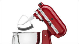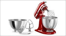 KitchenAid understands the intricacies of baking. They know that mixing heavy dough with a spoon may not produce the best bread (and may wear out your arms). That’s why their stand mixers come with three distinct mixing attachments. Use the wire whisk to mix egg whites, or to craft your own creamy mayonnaise. The dough hook will help to produce a fine cookie mixture or to knead a pizza base, and the flat beater is your reliable all-rounder.