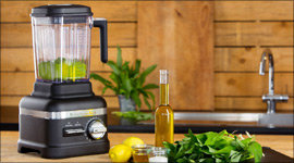 Boasting the most powerful motor of any KitchenAid blender, the KSB8270 is engineered for efficiency. The asymmetric stainless steel blades will break down frozen fruits, leave nothing of nuts, and annihilate ice.