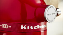 | Finish Colour Description | Passion Red and includes a custom trimband, chrome accents, and a custom chrome medallion hub cover celebrating 100 years of KitchenAid®. |