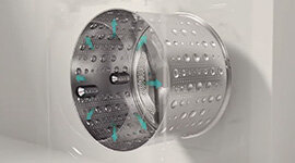 This washing machine washes a 3kg load of lightly soiled laundry in just 39 minutes, thanks to water jets that enhance both the wash and rinse cycles for efficient cleaning.