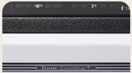 DoorCooling⁺Technology uses front ceiling vents to quickly direct cold air onto items stored in the door, ensuring faster cooling and stable temperatures. This helps preserve food quality, even with frequent fridge access during busy daily routines.
