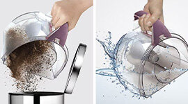 Easily empty the large-capacity dust bin with a simple removal process. For hassle-free maintenance, the dust bin is designed to be easily washed, ensuring convenient and efficient cleaning.