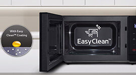 This microwave features an interior coating that simplifies and enhances cleaning convenience. This innovative technology ensures a hygienic and easy-to-maintain surface, making cleaning quicker.