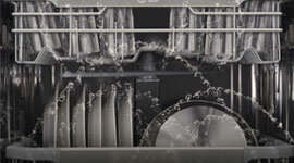 Gently clean your delicate dishes while power-washing dirty pots and pans with the Dual Zone Wash option. Water spray intensity delivered to the upper and lower racks is varied to suit the items being washed in each rack.