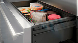 BioFresh technology is designed to create the ideal climate for delicate and sensitive ingredients. The Meat & Dairy safe maintains a temperature close to 0-degrees Celsius, preserving freshness and flavour, while the Fruit & Vegetable safe offers higher humidity to keep produce crisp. With factory-calibrated settings, BioFresh ensures optimal storage conditions from day one.