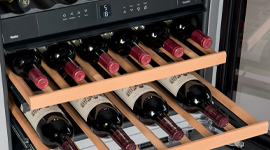 Wooden shelves run on smooth telescopic rails for easy access to your bottles. This also makes it easy to put away and organise your collection.