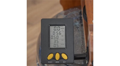 | Features | ● Workout Statistics: Time (min:sec), Speed, Distance and Calories (Estimate) ● Console: Large LCD display and Shows multiple statistics at once ● Seat: Contoured for comfortable seating and Commercial Quality 6-roller system ● Water/Fluid Chamber Rower ● Natural Water Dynamic Resistance ● Belt Drive-train ● Large Pedals with Velcro Straps ● Padded Handles ● Rowing Cord: Polypropylene Fiber and Latex |