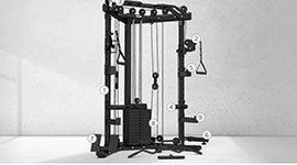 Incorporates a power rack, cable crossover, landmine, chin-up and dip stations—providing all the essential tools for strength and functional training in one compact unit.