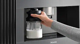 Miele’s EasyClick milk system makes frothing effortless. The high-quality glass container clicks easily into place at the front of the machine and removes just as smoothly for quick cleaning. Being transparent, it also lets you keep an eye on milk levels, ensuring you’re always ready for the next perfect cup.