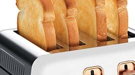 The four toaster slots are deep and wide, and can accommodate most toast thicknesses. Each pair of slots have independent operation, allowing you to toast to your own preference without effecting the other slot.
