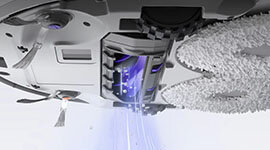The intelligent base station quietly empties the dustbin, washes and dries the mops with hot water, and stores debris for up to four months—minimizing maintenance and maximizing hygiene.
