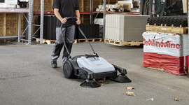 Ideal for use when space is limited or in congested areas. The brooms are rotated by the gear system as the machine is pushed forward by the user, making the sound level low.