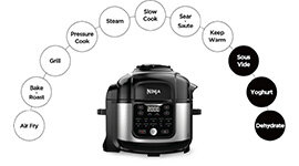 Switch between 11 versatile cooking functions using intuitive touchscreen controls. Air Fry, Pressure Cook, Slow Cook, Grill, Bake/Roast, Sear/Sauté, Steam, Dehydrate, Sous Vide, and Yoghurt—all in one pot.
