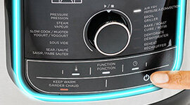 Comes with two separate cooking lids. The Pressure Lid for slow cooking, pressure cooking, sautéing, and steaming, and the Crisping Lid for air frying, baking, roasting, and grilling.