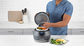 The NutriBullet EveryGrain Cooker simplifies meal preparation by allowing you to simultaneously cook grains and steam veggies, seafood, dumplings, and more using its stackable steaming basket. Enjoy balanced and nutritious meals.