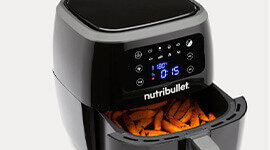 The NutriBullet Air Fryer roasts, bakes, dehydrates, and crisps family-sized portions of your favourite foods to perfection.
