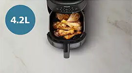 The Philips 2000 Series Airfryer 4.2L is compact, intuitive, and impressively efficient—perfectly suited to everyday kitchens. Designed for those who want to cook tasty meals with less oil and effort, this sleek airfryer features a 4.2L capacity, offering the ideal balance between performance and convenience. Whether you're preparing crispy chips, roasted veggies, or tender drumsticks, you can enjoy delicious results in under 15 minutes.
