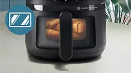 RapidAir Technology, paired with Philips’ signature starfish-shaped design, ensures hot air circulates evenly for food that’s golden and crispy on the outside while remaining juicy on the inside. With up to 90% less fat than traditional frying, it helps you serve healthier meals without compromising on taste or texture. The integrated cooking window adds a layer of control and fun—allowing you to watch your food transform as it cooks, so there’s no guesswork or need to open the basket.
