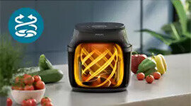Patented RapidAir Plus Technology with a starfish-shaped design ensures hot air circulates evenly around food. Meals cook up to 30% faster while remaining crispy outside and tender inside—even in larger-capacity airfryers.