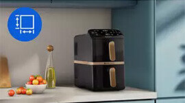 The innovative vertical design saves 45% more countertop space compared to traditional airfryers. Ideal for compact kitchens, this stacked layout maximizes cooking capacity without compromising on convenience or footprint.