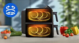 Vertical RapidAir Technology ensures food is crispy on the outside and tender inside using up to 90% less fat. Hot air circulates evenly across both levels, delivering consistent, delicious results with every use.