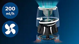 Delivers up to 200 ml/h humidification, making it ideal for spaces up to 32 m². With automatic humidity adjustment and three fan speeds, you can fine-tune the atmosphere to match your comfort and health needs.