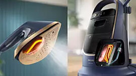 Combines two heating elements to deliver powerful steam that penetrates deeply into fabrics, outperforming standard steam irons and ensuring fast, efficient crease removal on all garments types