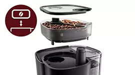 Store and mix two different coffee blends or easily switch between regular and decaf beans; the detachable container is simple to refill and clean, thanks to its included brush and smart design.