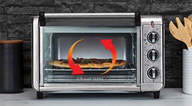 Hungry and short on time? The Russell Hobbs Air Fry Crisp 'N Bake Toaster Oven is your solution. Its powerful 1500W convection fan ensures even heat distribution for quick and delicious meals.