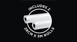 This vacuum sealer includes 2 rolls (28cm x 3m) so you can immediately start sealing your food.