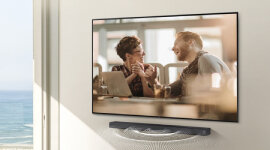 Mixing and outputting sound so it appears to emerge from where the action is on screen, Acoustic Beam technology consists of up-firing drivers, directing sound through an Acoustic Beam. The beams themselves contain holes of different sizes to project different sound frequencies across a wider area, for heightened audio.
