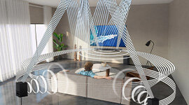 Dolby Atmos technology creates a 360° audio field above and around you. Conventional Soundbars shoot audio directly at you and that creates a two-dimensional sound experience. With Dolby Atmos, the upwards firing speakers send sounds to the roof, which then bounce down on top of you and immerse you in audio from above.