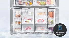 All-around Cooling technology continuously monitors temperatures and delivers consistent cold air from multiple air vents on every shelf. This helps to ensure that every nook of the interior maintains cold temperatures so your foods stay fresher for longer.