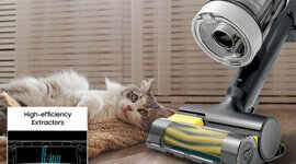 The lightweight HexaJet Motor delivers up to 280 watts of powerful suction across a variety of surfaces. Supported by nine Jet Cyclones and 27 air inlets, it works efficiently to maintain airflow, reduce suction loss, and trap fine dust — leaving floors and corners beautifully clean.
