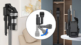 Store and charge your vacuum cleaner flexibly with the 2-in-1 Charging Station. It can be easily mounted on the wall to save space or used as a stand-alone charger with the removable battery.