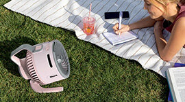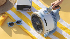 The HydroGo’s durable, water-resistant compact design delivers portable cooling anywhere - backyards, bedrooms, workouts, camping trips or sidelines - providing comfort indoors or outdoors.